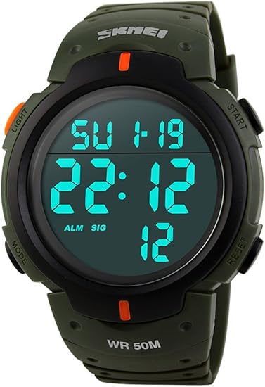 Amazon Skmei 腕時計 メンズ 大きい文字盤 スポーツ 5気圧防水 デジタル表示 Ledライト 日付 曜日 カレンダー アラーム プラスチックベルト ブラック ミリタリーグリーン メンズ腕時計 腕時計 通販