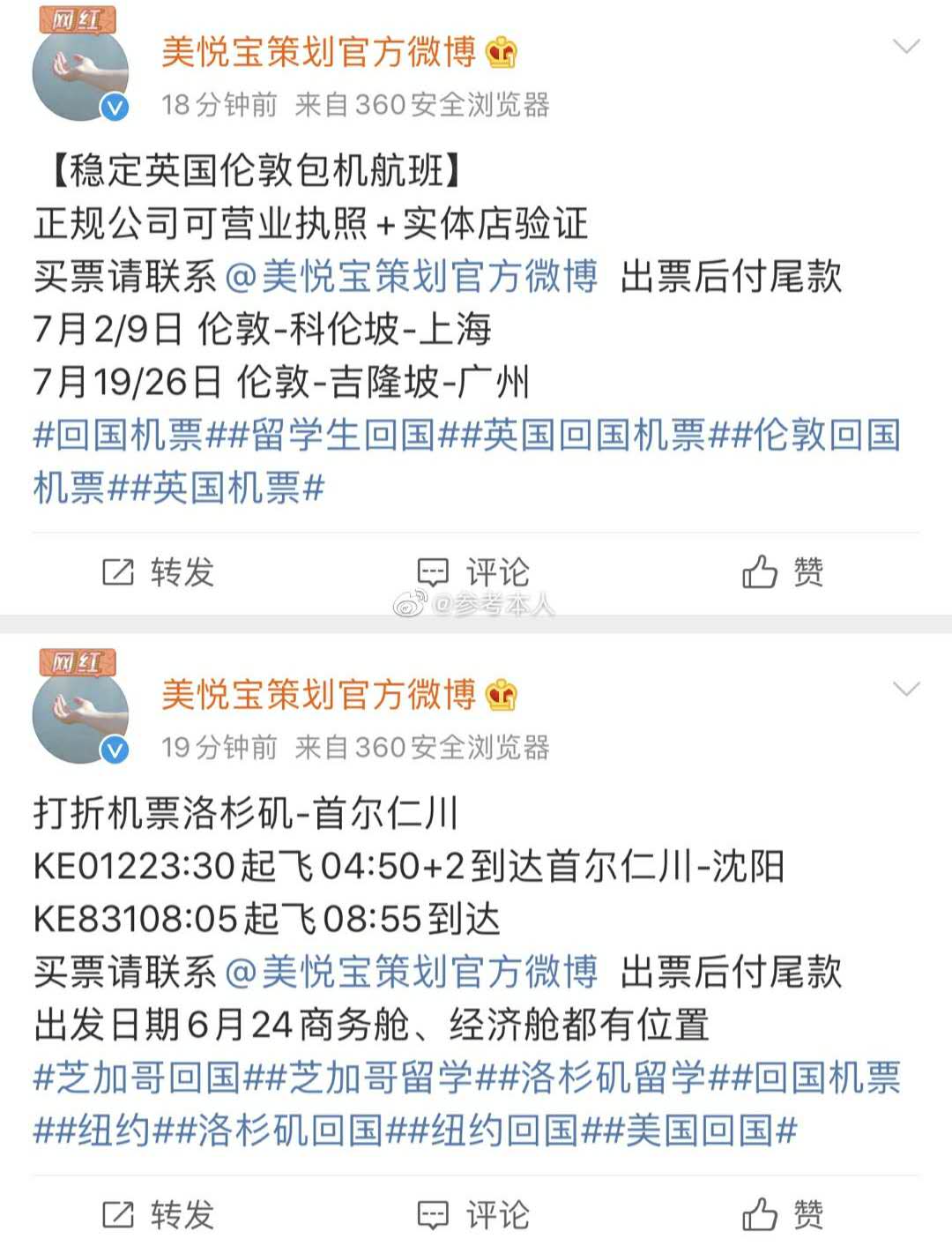 微博 票代 借售 空头机票 设连环套 骗数十留学生上百万