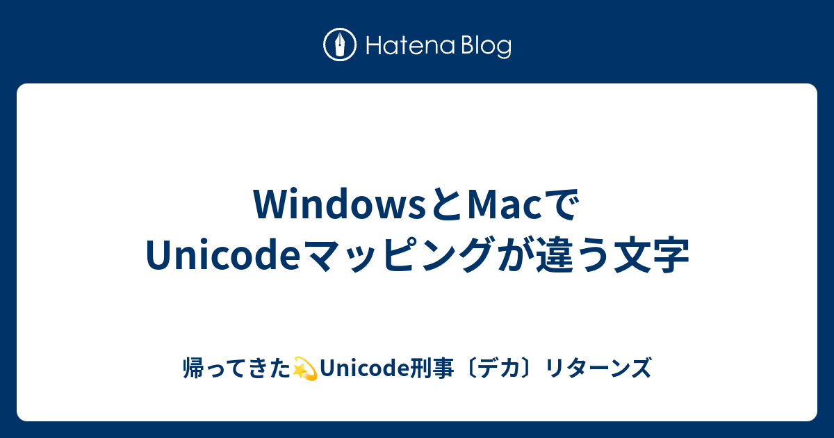 Windowsとmacでunicodeマッピングが違う文字 帰ってきた Unicode刑事 デカ リターンズ