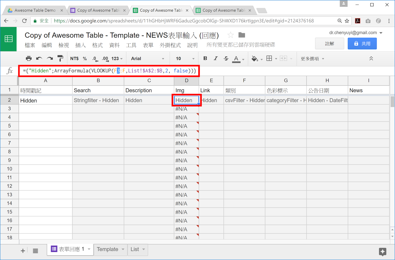 用awesome Table做的最新消息列表結合google Form輸入 Practical Dbm