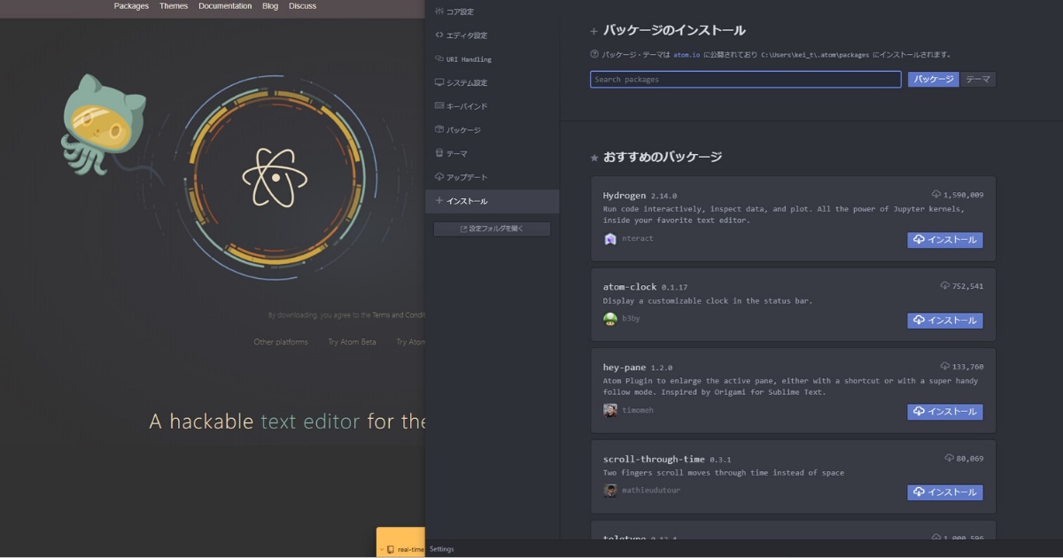 Atom最初の1歩 基本的な使い方 入れておくべきパッケージ