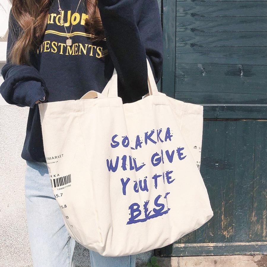 トートバッグ ショッピングバッグ エコバッグ2way ロゴプリント 青 英文字 大容量 A4 綿 コットン キャンパス 帆布 軽量 折り畳み 通勤 通学 旅行 マイバッグ Ba 18183 Tokohana 通販 Yahoo ショッピング