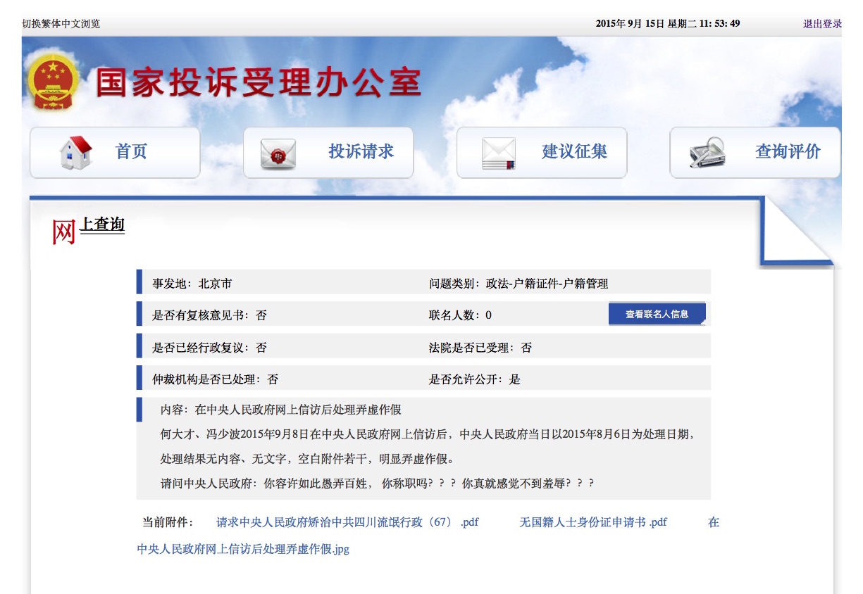 中国劳工何大才控告在线 请求中央人民政府矫治中共四川流氓行政 七十一
