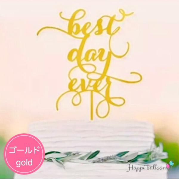 ケーキトッパー ゴールド 結婚式 ウェディング ウエディング Best Day Ever 筆記体 Kt008 Happiballoon 通販 Yahoo ショッピング