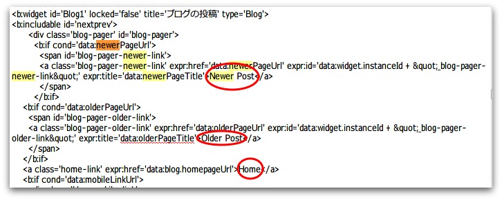 Blogger ページ送り機能 前の投稿 の表示を英語表記に変える方法 Sunabox